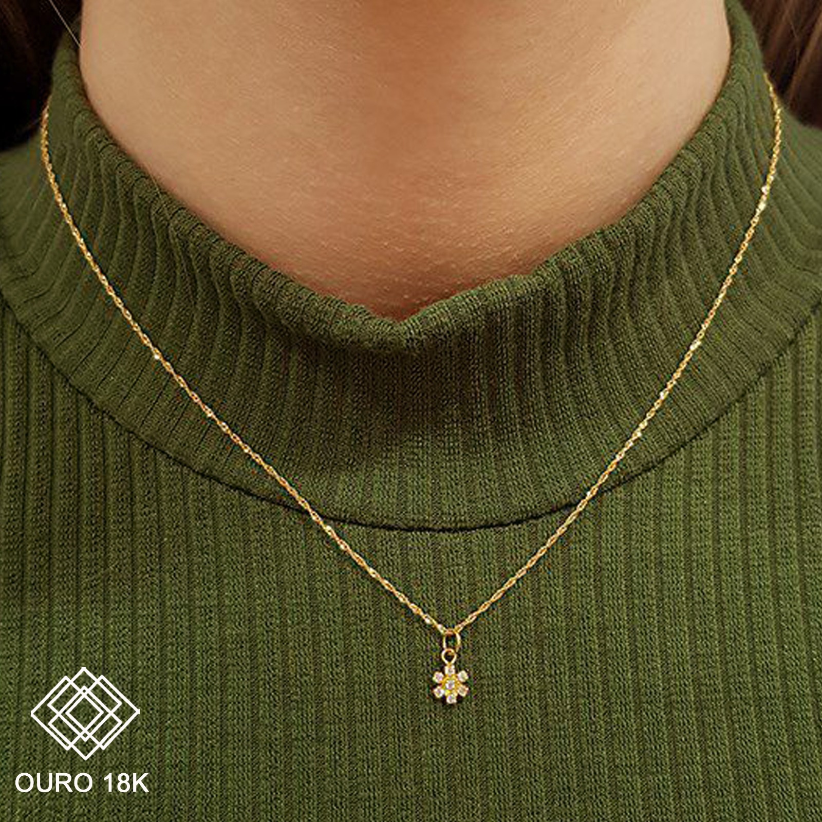 Gargantilha em ouro 18k malha singapura e pingente trevo de quatro folhas, cravejado com diamantes. Com o tamanho de 40 centímetros, este é o kit perfeito para brilhar em todas ocasiões, versátil e elegante ideal para compor lindas combinações.