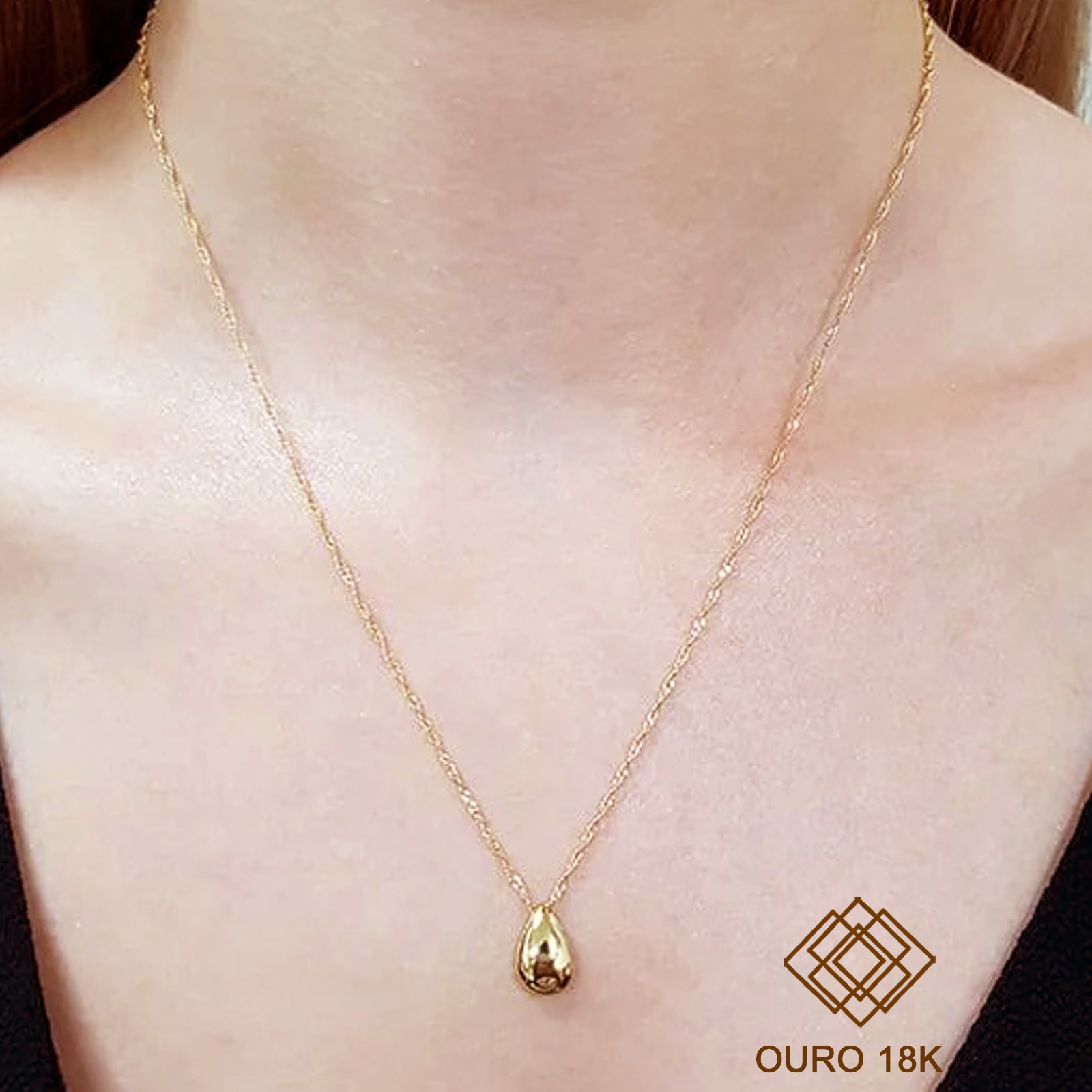 Gargantilha em ouro 18k composta por malha singapura e pingente gota com design liso. Com o tamanho de 45 centímetros, este é o kit perfeito para brilhar em todas ocasiões, versátil e elegante ideal para compor lindas combinações.