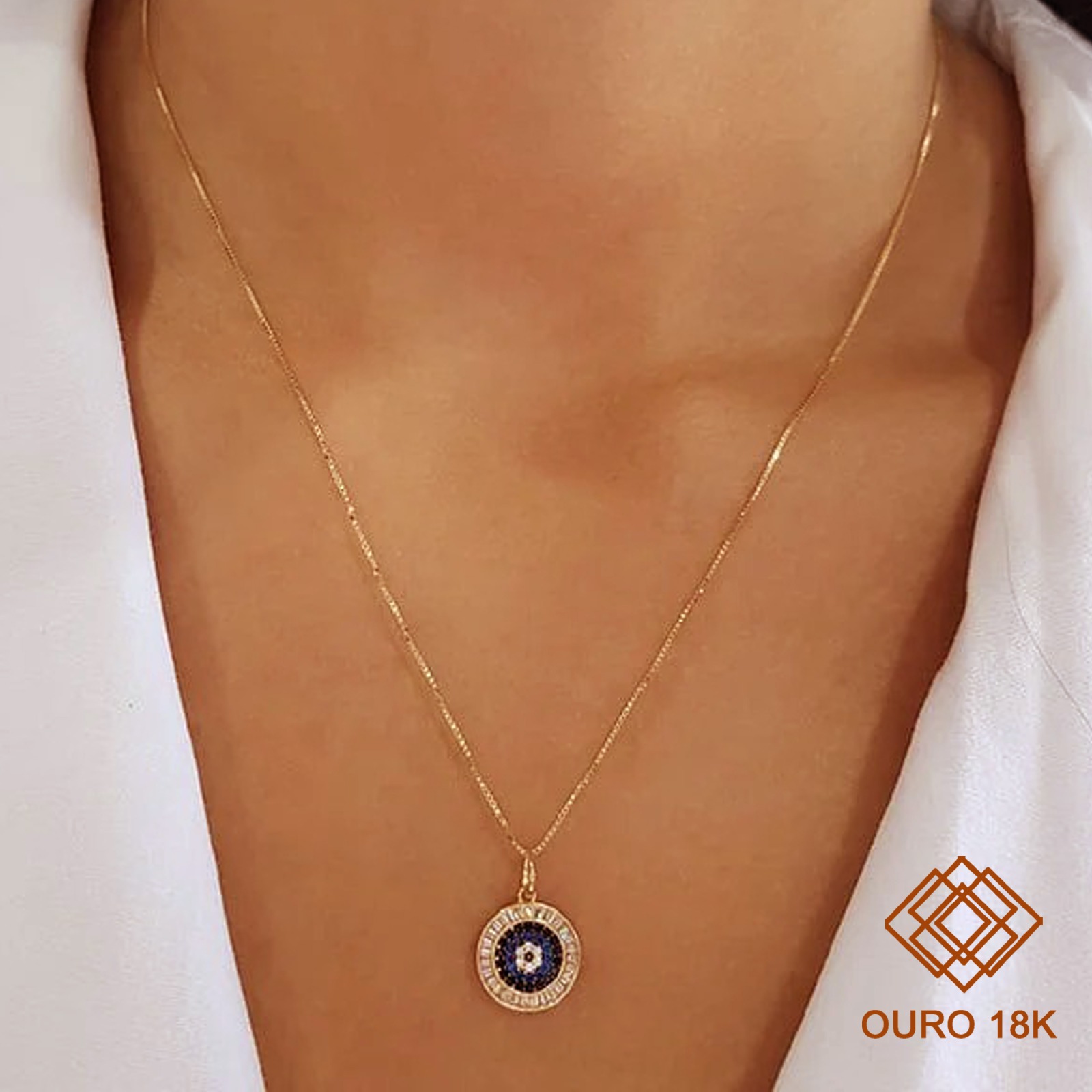 Gargantilha em ouro 18k composta por fio veneziano e pingente olho grego, cravejado com zircônias. Uma joia elegante e delicada perfeita para destacar seus looks.