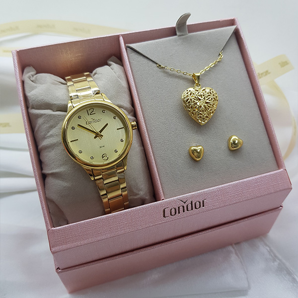 Kit Relógio Condor Feminino Dourado Co2035nzr/k4x