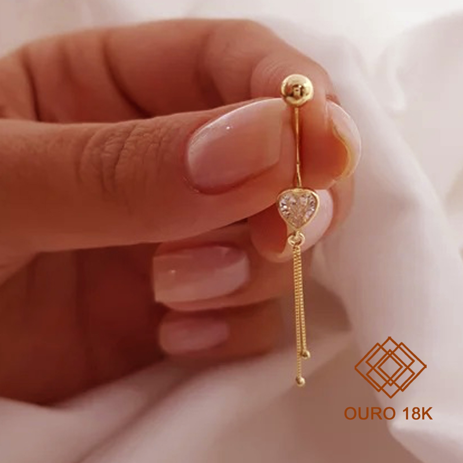 O piercing é confeccionado em ouro 18k cravejado com zircônias. Um piercing lindo e romântico para você arrasar nas composições de joias. Modelo com design de coração, para dar mais delicadeza à peça.