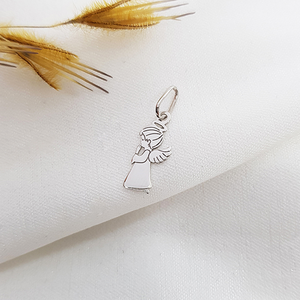 Este apresenta um design delicado em formato de anjo, símbolo de proteção, fé e espiritualidade. Seus traços suaves e acabamento polido valorizam cada detalhe da peça, criando um visual leve e elegante.