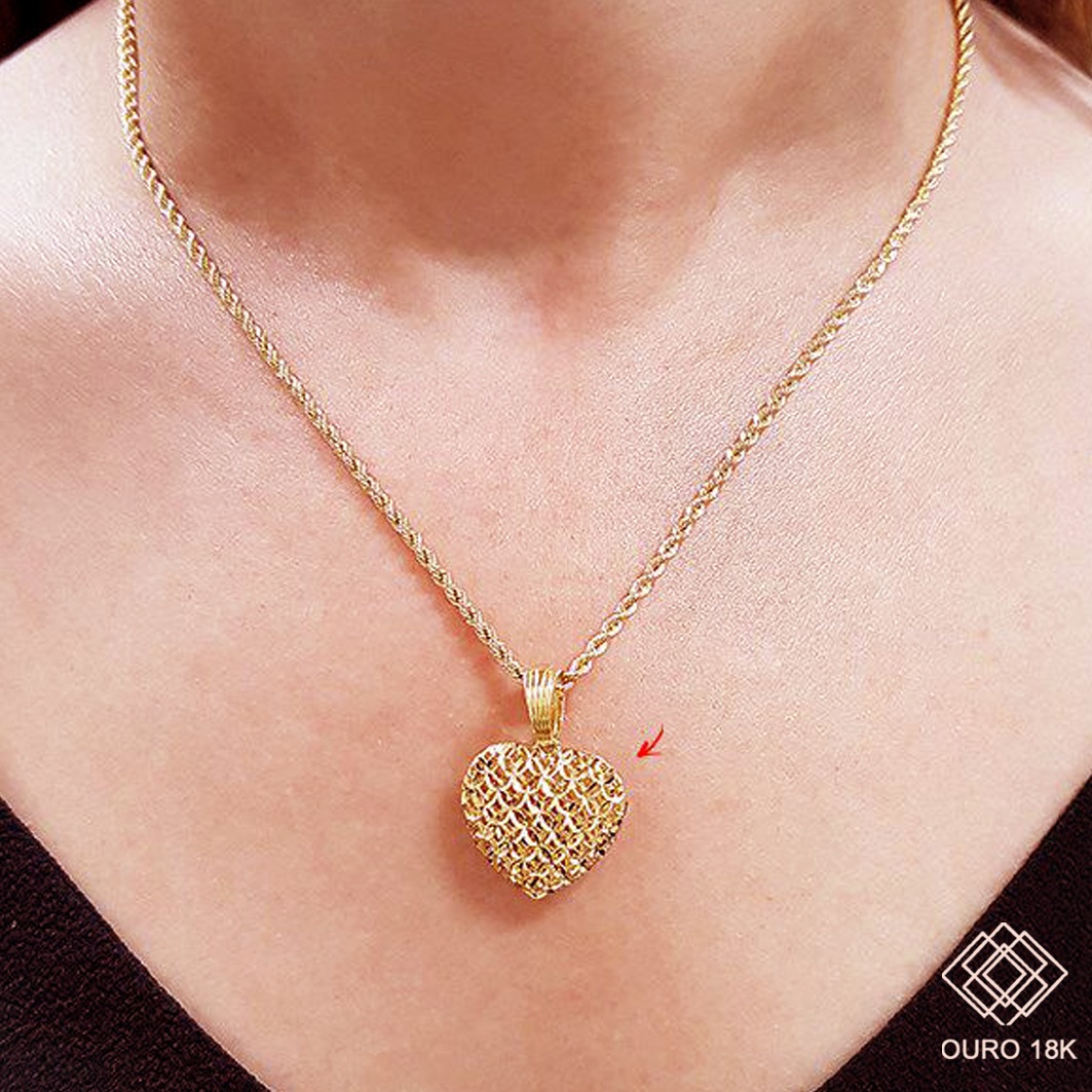 Um modelo lindo, com design super delicado e romântico! O pingente coração diamantado confeccionado em ouro 18k.