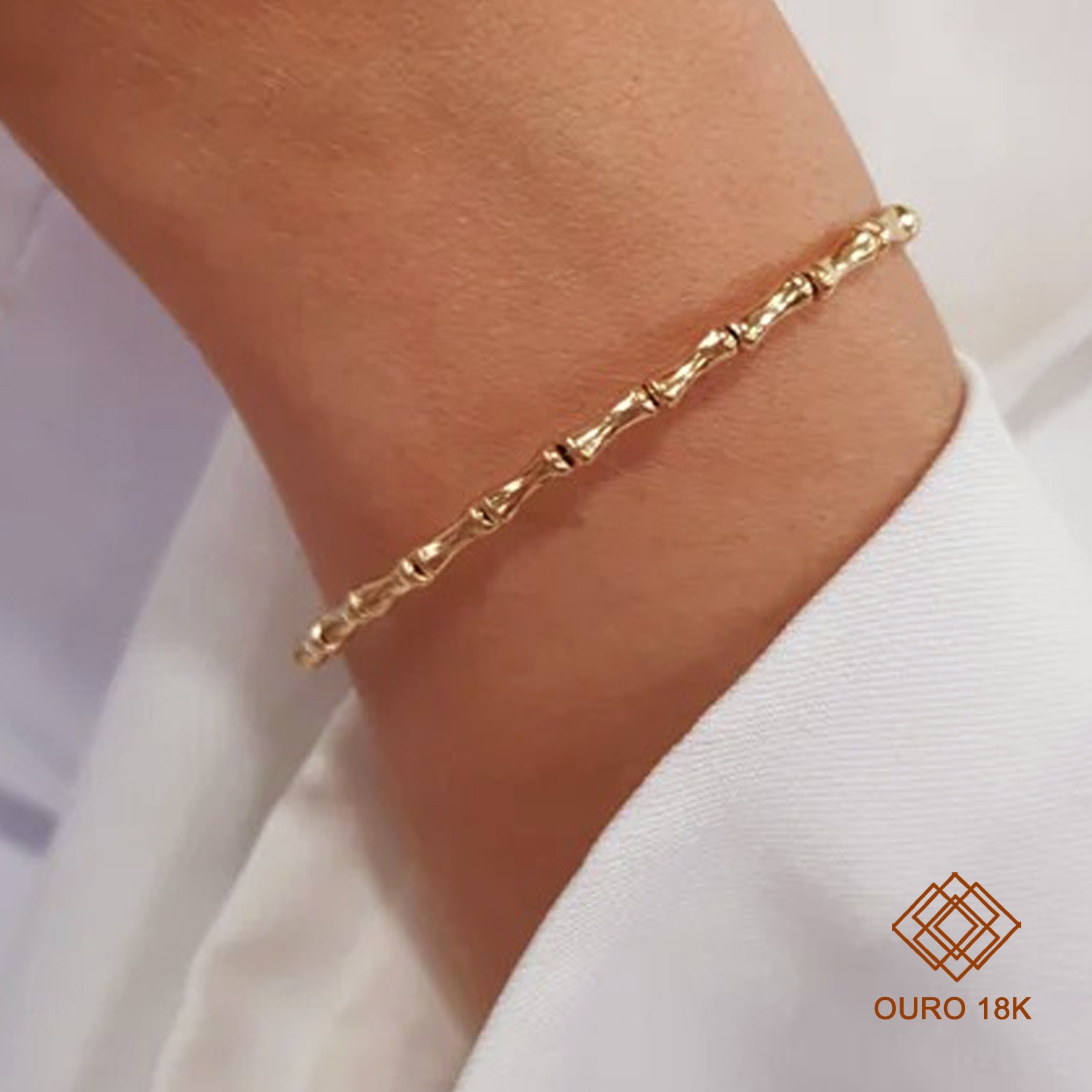 Uma joia toda confeccionada em ouro 18k, em malha canutilho, que garante conforto e beleza em todos os momentos de seu dia. A qualidade e segurança de uma joia antialérgica e eterna.