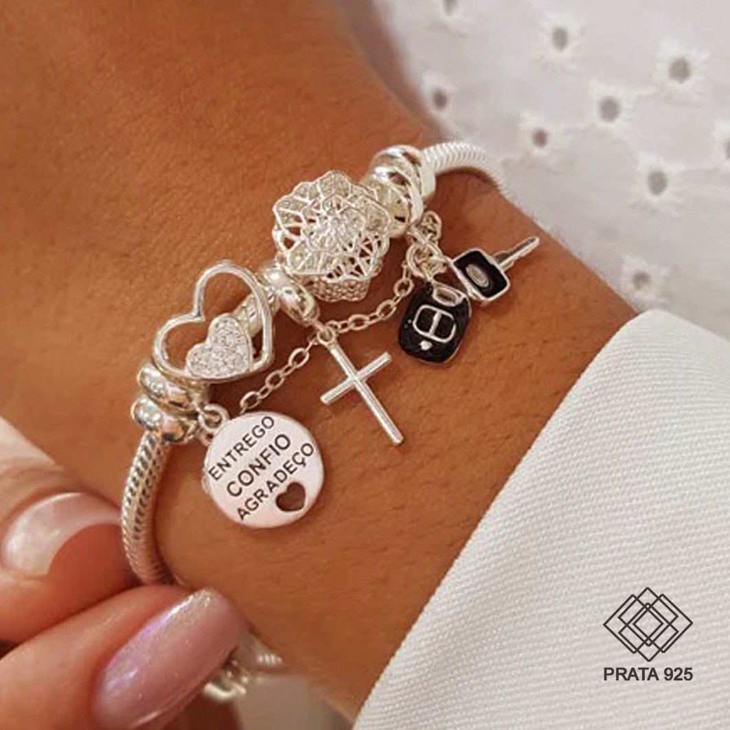 pulseira de berloque, pulseira berloques, pulseira chave, pulseira com pingente cruz, pulseira com pingente coração