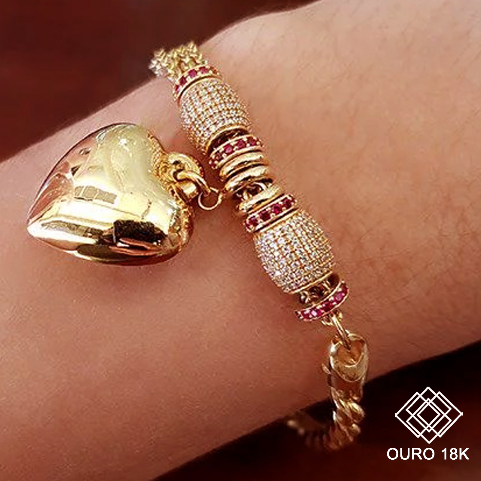 Modelo especial, com um lindo pingente de coração! Seu design delicado, em elos ocos, transforma e desenha uma maravilhosa pulseira!!