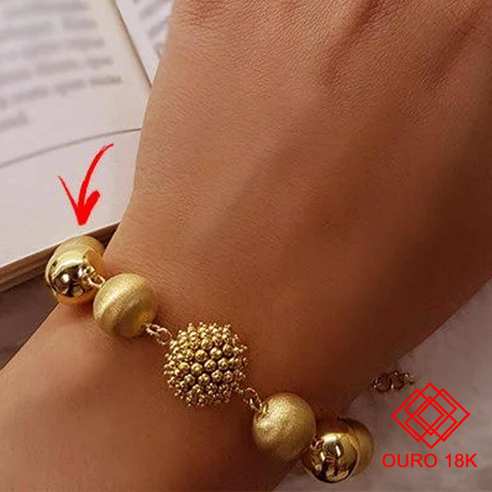 Essa joia se destaca pelo seu modelo de esferas que alem de elegantes trazem brilho para suas composições devido ao acabamento com mix de texturas.
