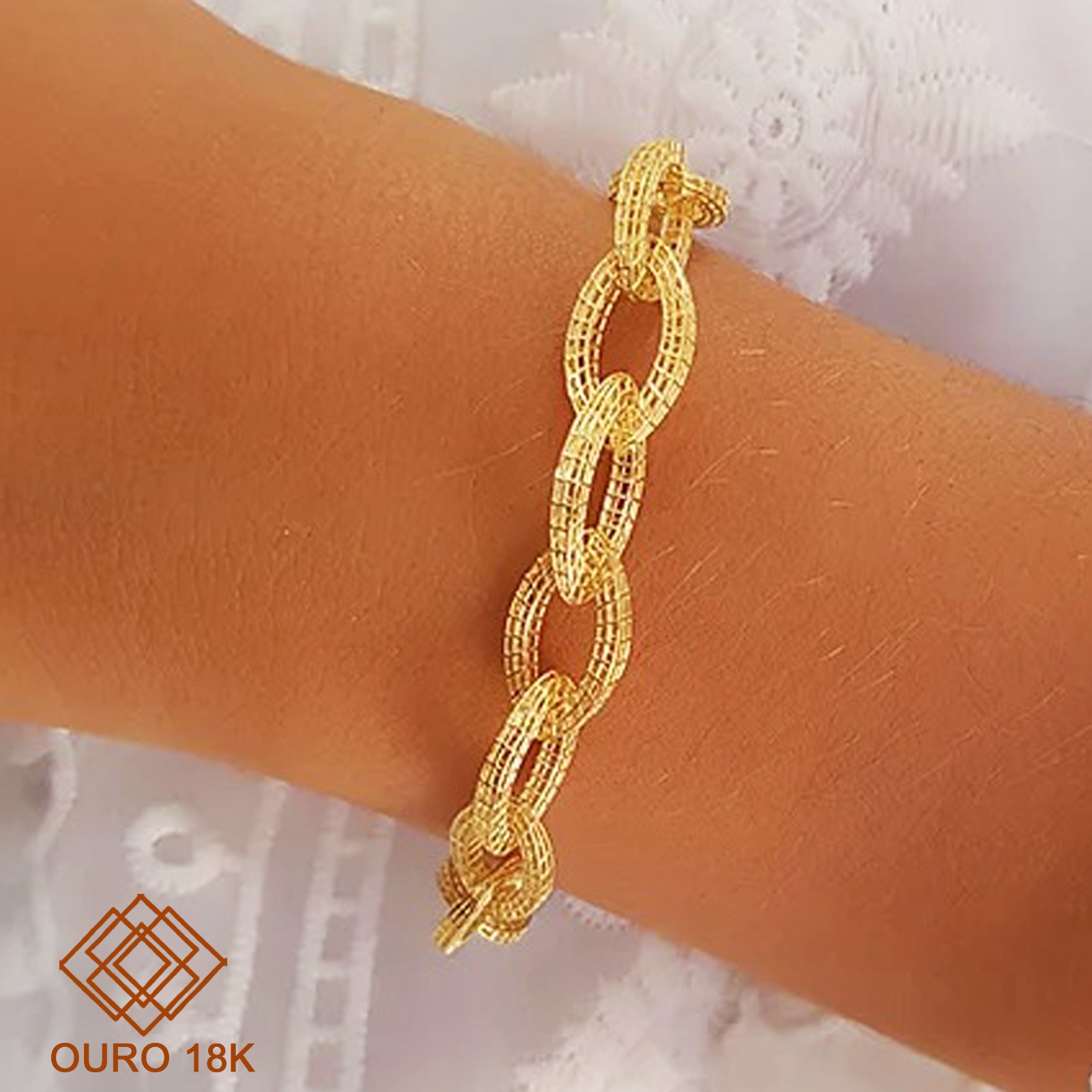Uma pulseira que merece estar em suas composições e em seus melhores momentos. Linda e versátil, o design elos é a opção ideal para quem gosta de joias vistosas.
